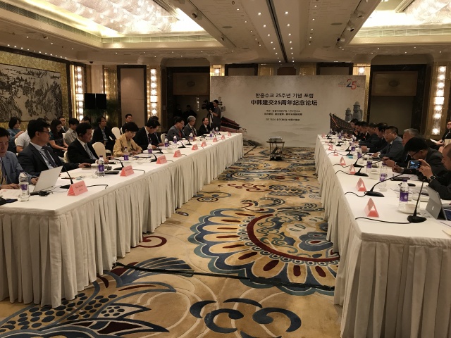 此次論壇是中韓建交25周年的系列活動之一,主辦雙方旨在通過智庫交流進一步推進中韓公共外交,為兩國關系的恢復和平穩健康發展貢獻積極力量。致辭嘉賓還包括韓國前駐華大使、未來研究院院長辛正承,盤古智庫理事長易鵬,盤古智庫學術委員會名譽主任、中共中央對外聯絡部原副部長于洪君,韓國外交部公共外交大使樸銀夏等。韓中未來研究院執行委員、前外交官丁相基,盤古智庫專家張璉瑰、朱鋒、高揚、王棟、岳立、安剛、梁亞濱等參加了主題發言和討論環節,針對過去25年間中韓關系發展歷程、目前中韓關系的癥結以及未來中韓關系發展方向等問題給出了意見與建議。
